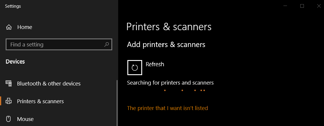 Once it runs for a little while, a link called "The printer that I want isn't listed."