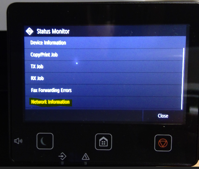 View the IPv4 information from within the network information/ settings section. Other printers may be set up differently and require you to print out a page with the network and IPv4 information on it.