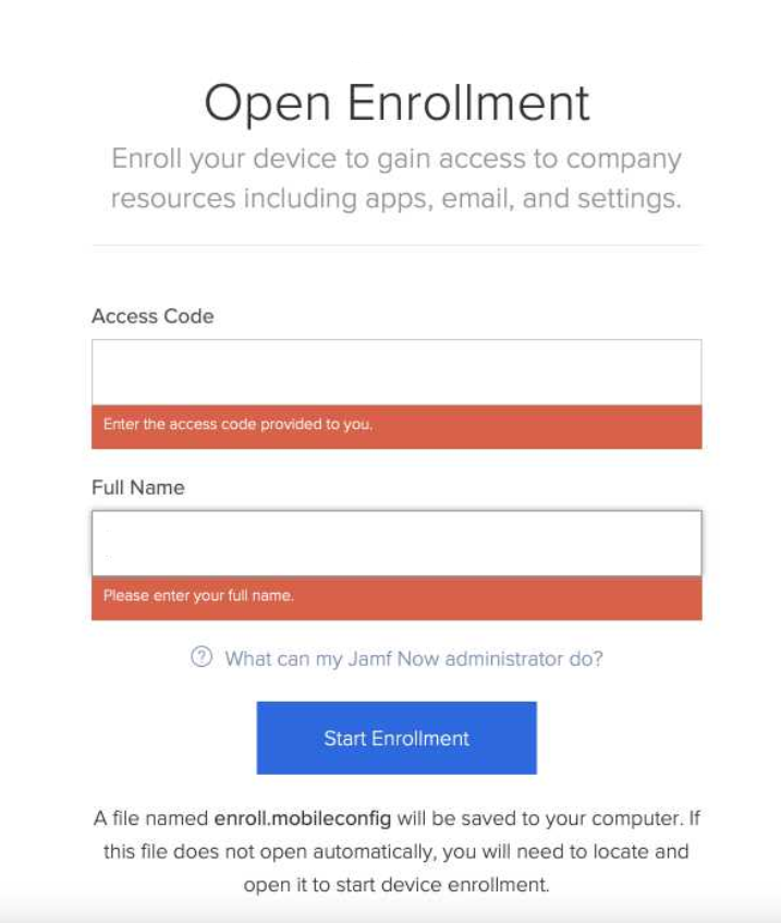 - Enter your name in the Full Name spot. This just tracks who enrolled the device.