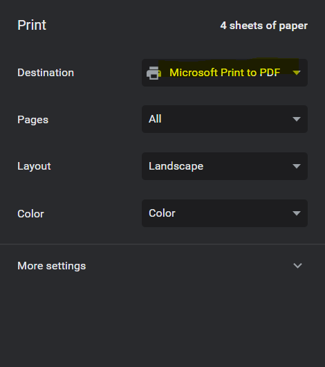 Open the print dialog for this page and look for the "Microsoft Print to PDF" option. If you see it, then it worked and you're good to go. If not, you can add the printer manually by following the directions below.