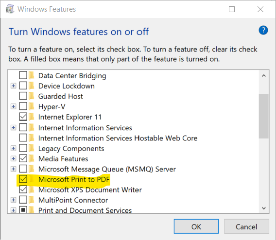 Windows 10 offers a built-in way to print a document to a PDF file. For some reason, if this option is missing from your list of printers, follow this guide to re-enable it.
